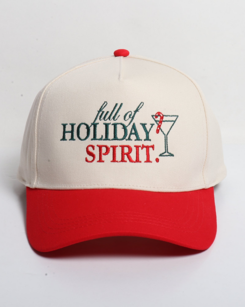 Best for Stocking stuffers and Christmas gift! Get festive with this “Full of Holiday Spirit” two-tone 5-panel cap, featuring cheerful embroidery—perfect for spreading holiday joy or gifting!